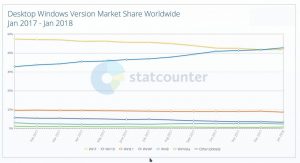 Aproape 4 ani mai târziu şi după revizii succesive care i-au îmbunătăţit semnificativ funcţionalitatea, Windows 10 reuşeşte să egaleze Windows 7 în privinţa cotei de piaţă, dar nu neapărat pentru că ar fi cu mult mai bun decât acesta. Mai degrabă, PC-urile cu Windows 7 ajung la capătul duratei de viaţă, iar odată cu înlocuirea acestora majoritatea utilizatorilor aleg să „împrospăteze” şi sistemul de operare.